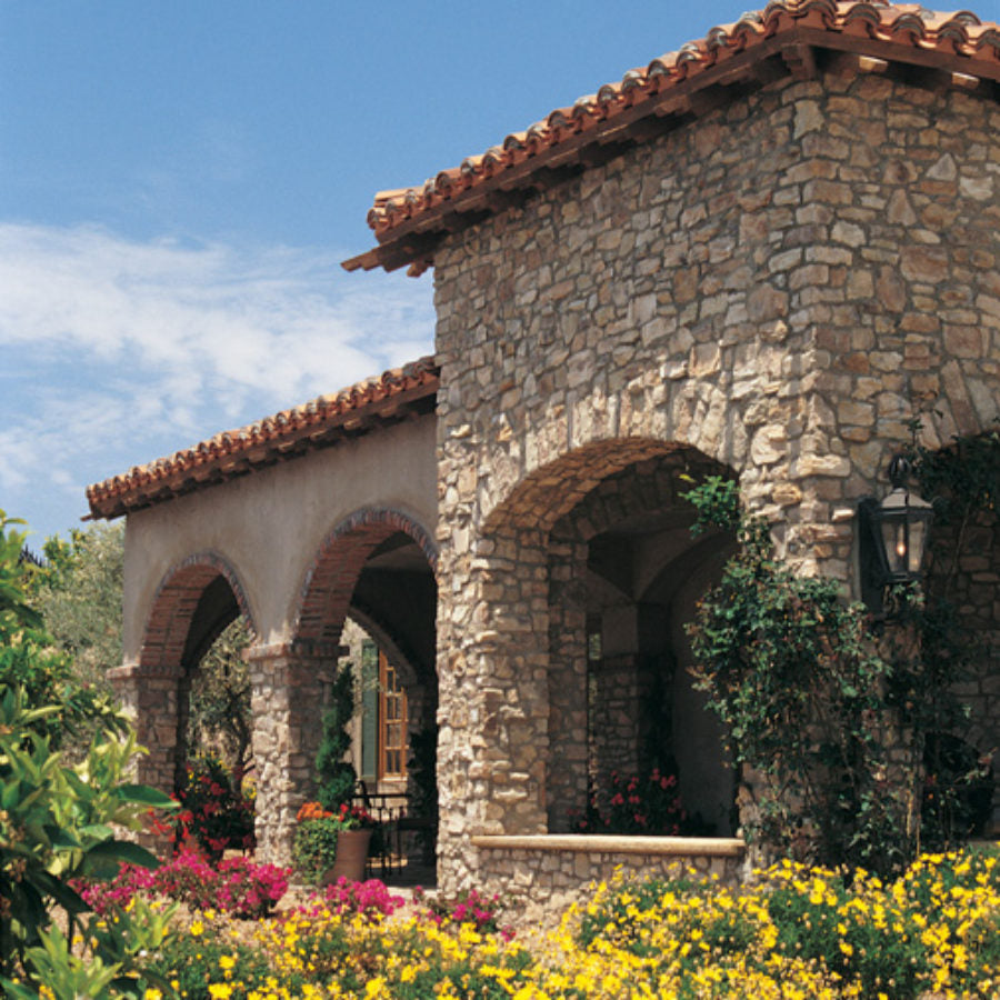 Hillstone is a distinctive hand-blended stone. With a raw linen color base — hidden by generous swaths of sage and intertwined with hints of tan and ochre — it is rugged and rusticated with the characteristic randomness of the Tuscany countryside. Corners available.